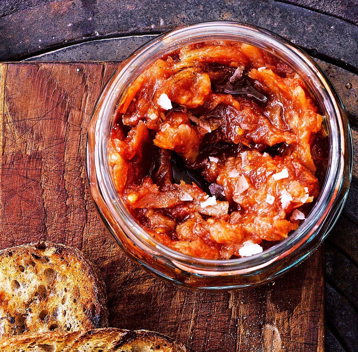 - Sekoita joukkoon mausteet ja keitä seosta kattilassa 10-15 minuuttia, kunnes seos sakenee. Säilö puhtaisiin tölkkeihin ja säilytä jääkaapissa.