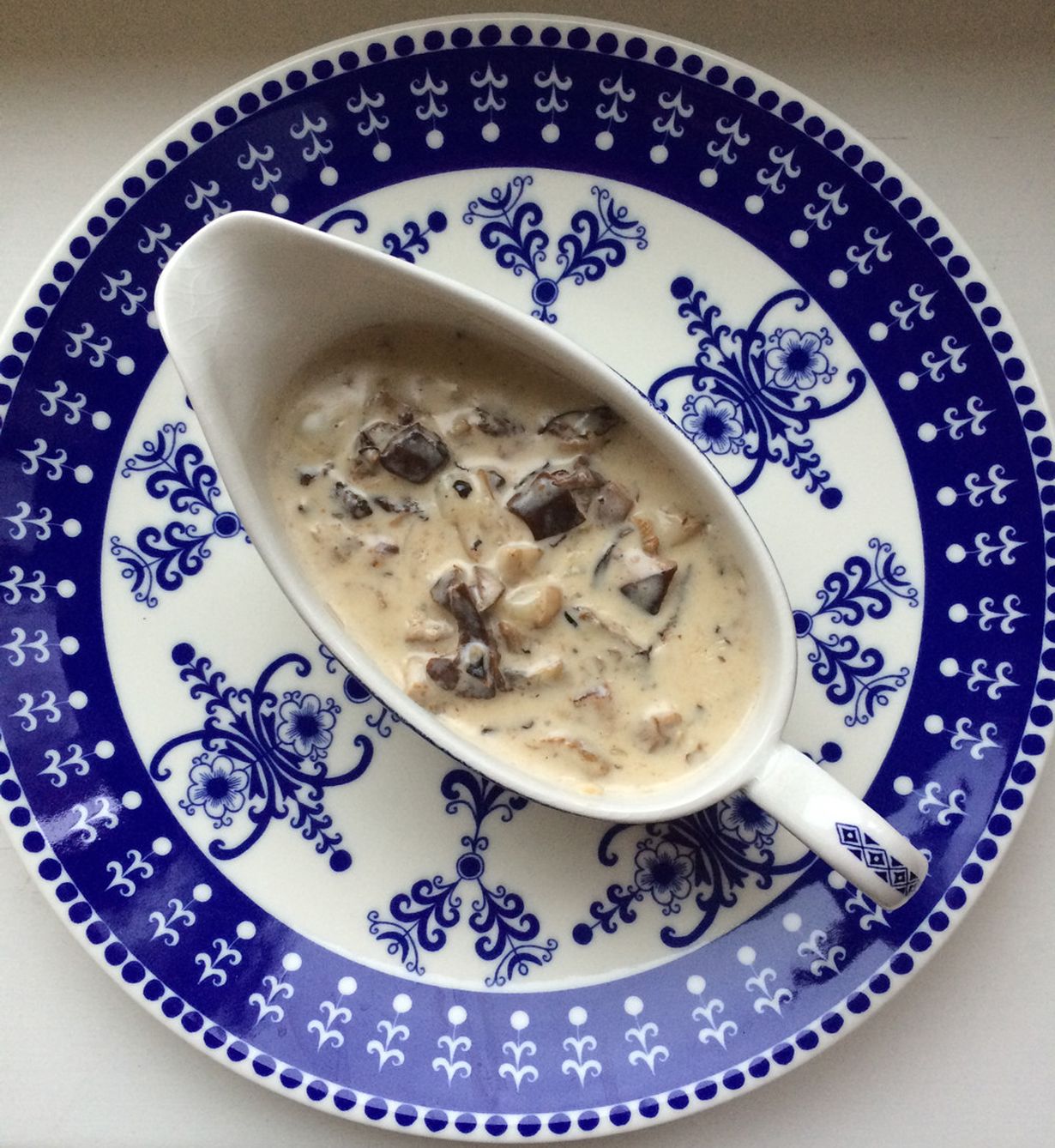 - Ryöppää sienet alla täältä löytyvän ohjeen mukaan. Hienonna sienet ja sipulit. Sulata voi kattilassa tai paistinpannussa. Kuullota sipulia ja sieniä kohtalaisella lämmöllä 5 minuuttia. Sekoittele välillä. Sipuli ei saa ruskistua, joten vähennä tarpeen mukaan lämpöä.