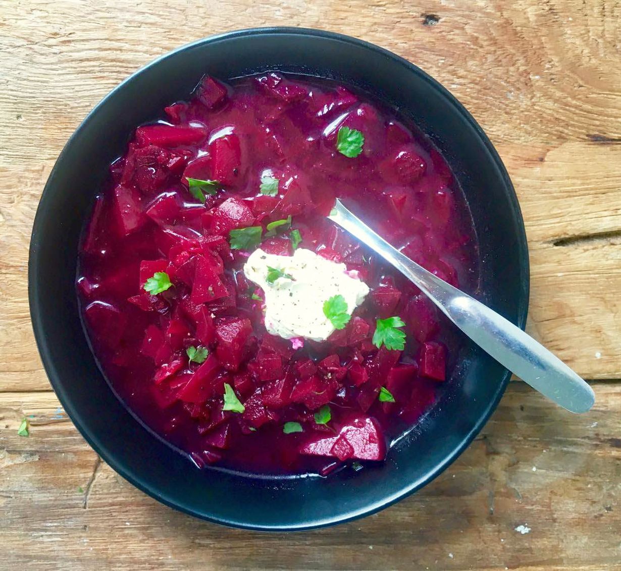 Borssi, kuten monet keitot, vain paranee uudelleenlämmityksestä. Säästä osa siis seuraavaan päivään. Vegaaniversiossa hunajan voi korvata sokerilla ja smentanan vegaanisella ranskankermalla (esim. Oatly).