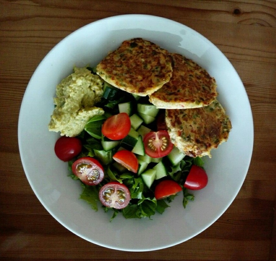 Vatkaa munien rakenne rikki ja yhdistä muniin jauhot ja mausteet. Kaada munaseos kasvisten joukkoon ja sekoita.