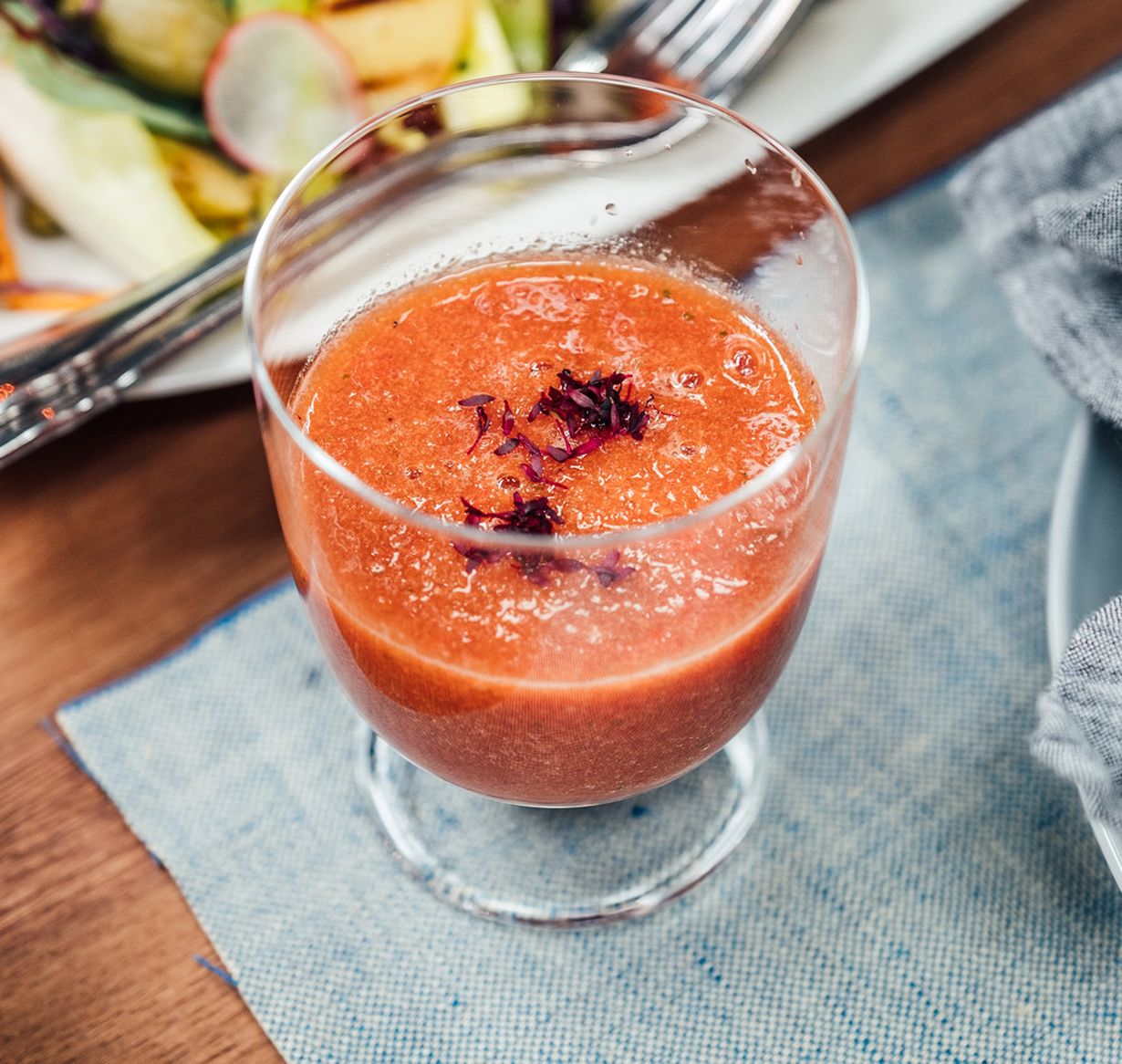 Mikko Kuustosen vain elämää -lounaalla syödään kylmää gazpachoa, joka saa tulisuutta tabascosta.