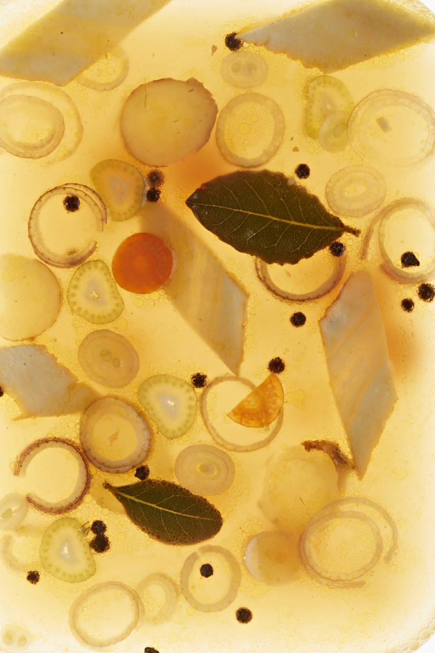Kuumenna liemi juuri ja juuri kiehuvaksi ja anna kiehua kannen alla hiljaa poreillen noin tunti.