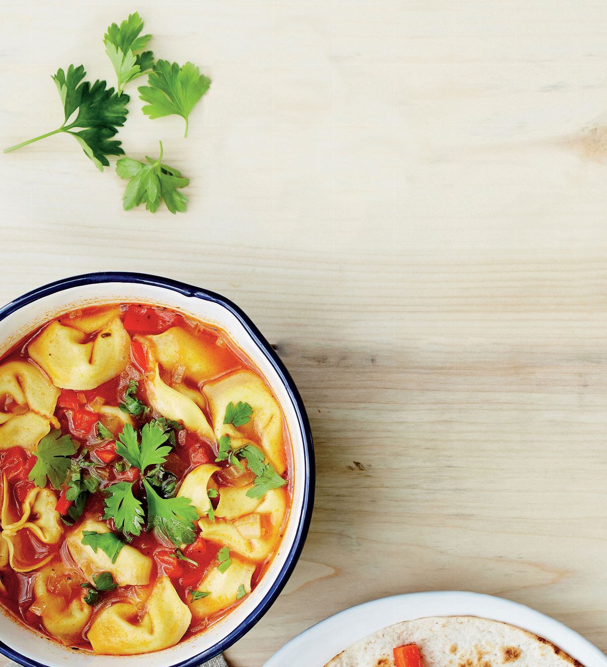 - Nostele joukkoon raviolit ja kypsennä 2 minuuttia. Viimeistele keitto silputulla persiljalla.