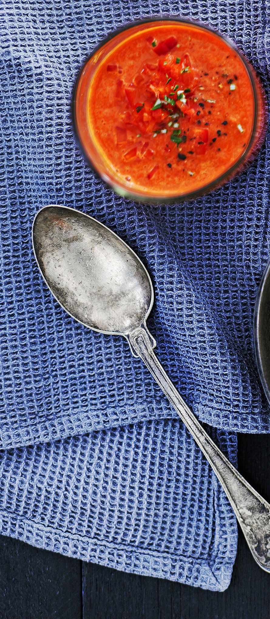 - Mittaa kaikki ainekset mustapippuria lukuun ottamatta tehosekoittimeen tai korkeaan kulhoon, jos käytät sauvasekoitinta. Soseuta. Jos keitto tuntuu liian sakealta, lisää tilkka vettä.