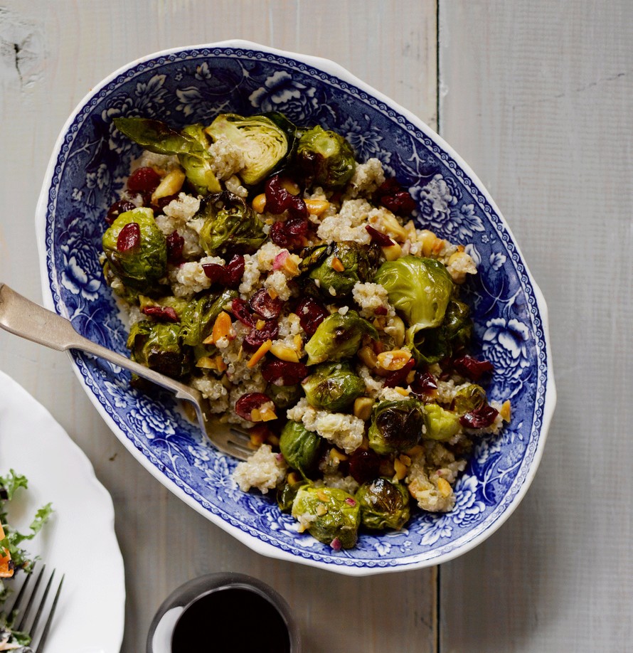 - Yhdistä kvinoa ja kaalit salaattivadissa. Lisää kuivatut karpalot ja pähkinät. Sekoita joukkoon kastike. Hienonna persilja salaatin pinnalle.