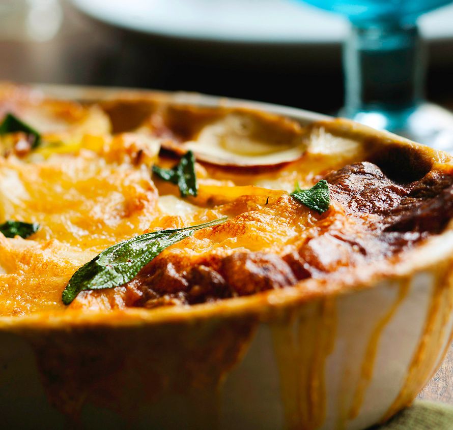 - Kypsennä 50 minuuttia 200-asteisen uunin keskitalolla. Lisää juustoraaste ja jatka kypsennystä vielä noin 20 minuuttia eli kunnes perunat ovat pehmenneet.