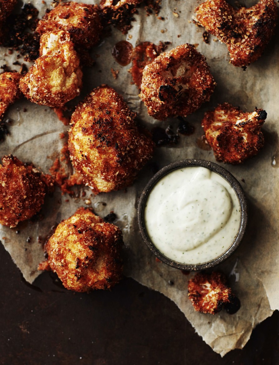 Uunissa rapeaksi paahdetut tuliset kukkakaalinuput ovat vegen wingsit. Dippaa wingsejä vegaaniseen majoneesiin tai chilikastikkeeseen.
