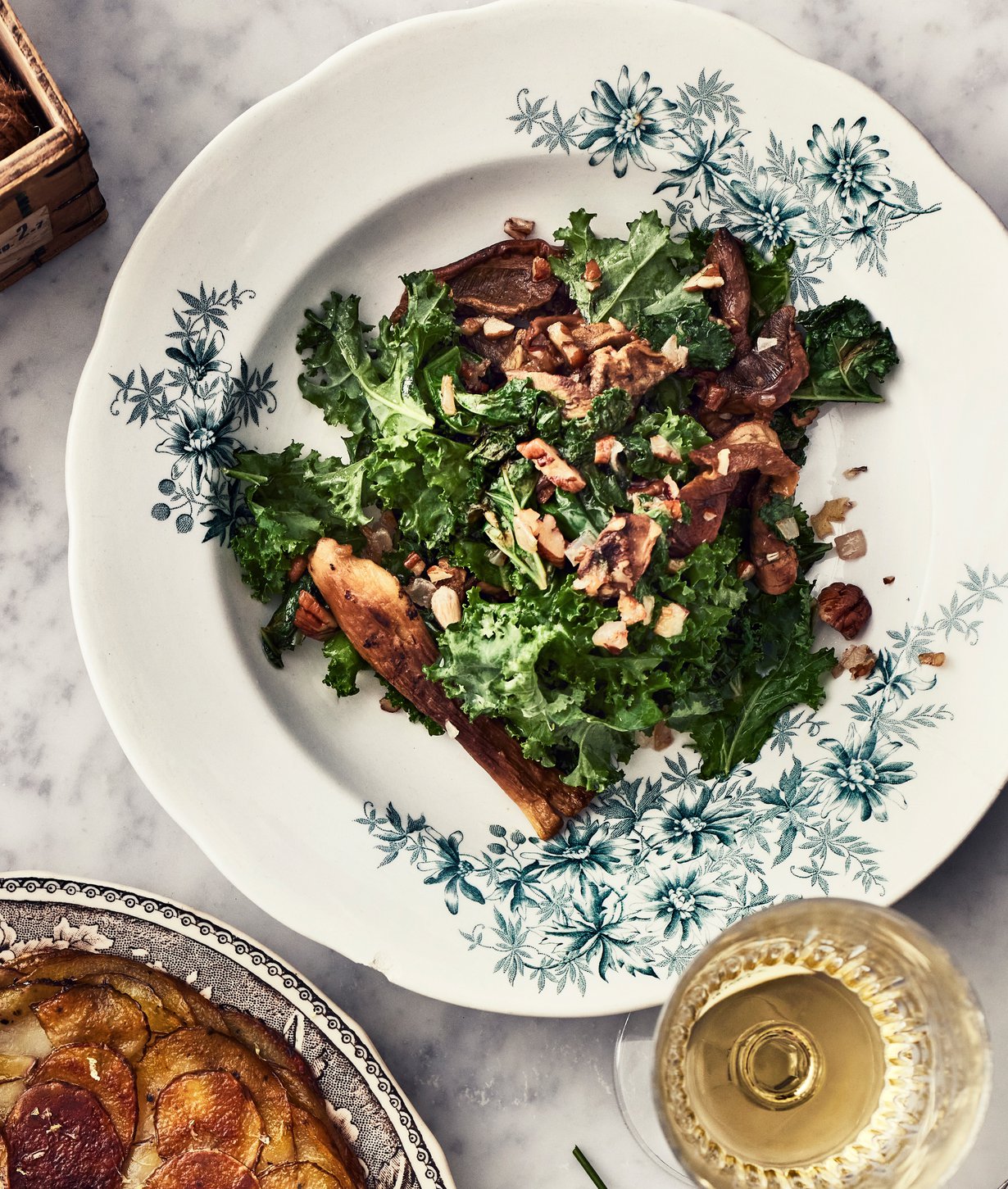 Lämmin suppilovahvero-lehtikaalisalaatti