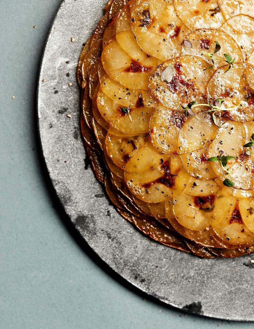 Pommes Anna on Ranskan lahja perunan rakastajille. Ohuen ohuet perunaviipaleet tiivistyvät upeaksi pehmeäksi kakuksi, jonka pinta vielä paahdetaan keikauttamisen jälkeen.