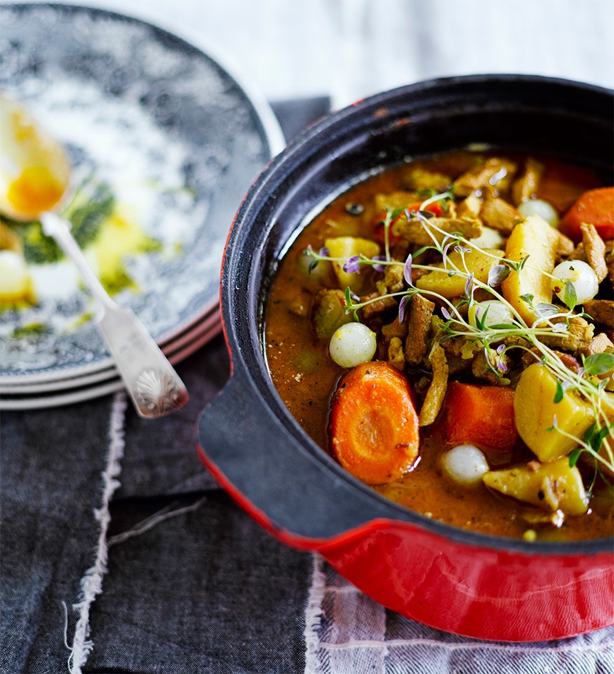 Voit tehdä linssipadasta kasvisversion, jos jätät makkaran pois ja korvaat sen soijarouheella.