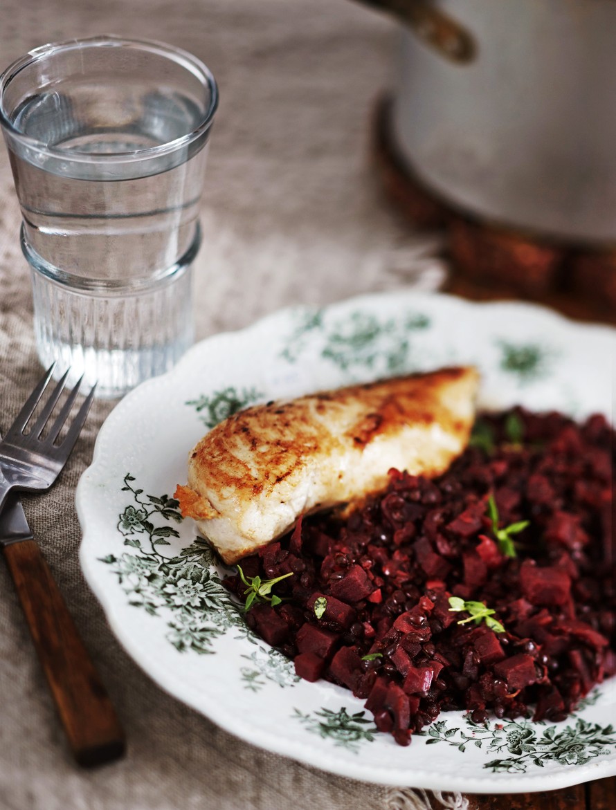 Punajuuripata on hyvää sellaisenaan tai sen kanssa voi tarjota paistetun vuohenjuustokiekon tai kanafileen.