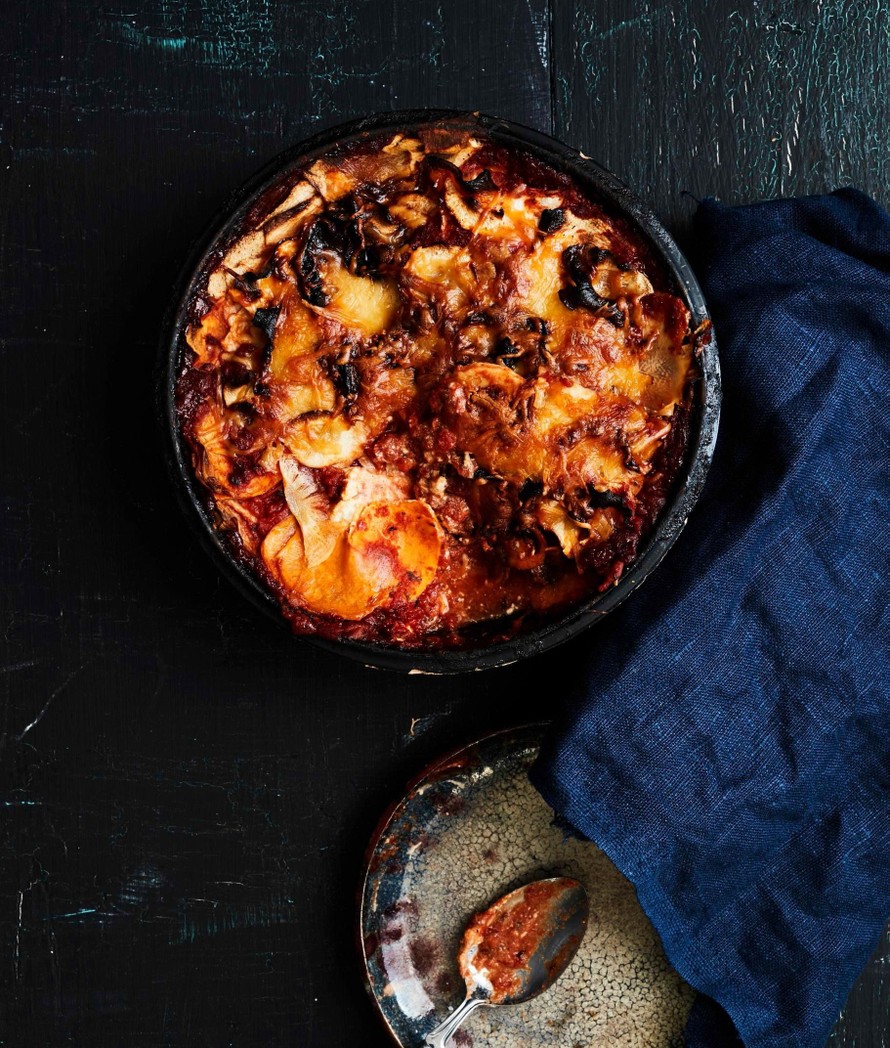 Juureksista haudutettu pata on ihanaa lohturuokaa. Tuorejuusto antaa moussakalle ihanan kermaisen maun.