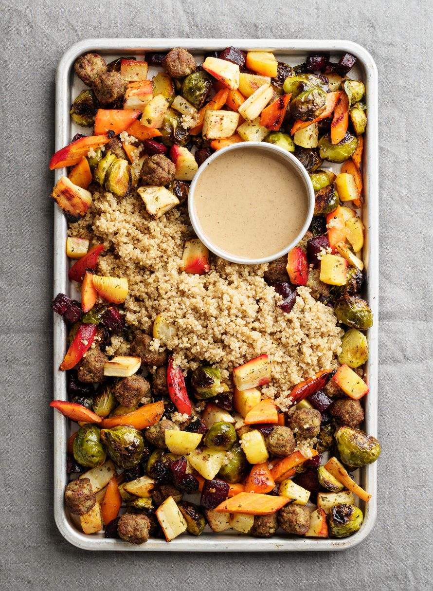 - Juuresten paahtuessa keitä lisäke (esimerkiksi kvinoa, täysjyväriisi tai -vilja).