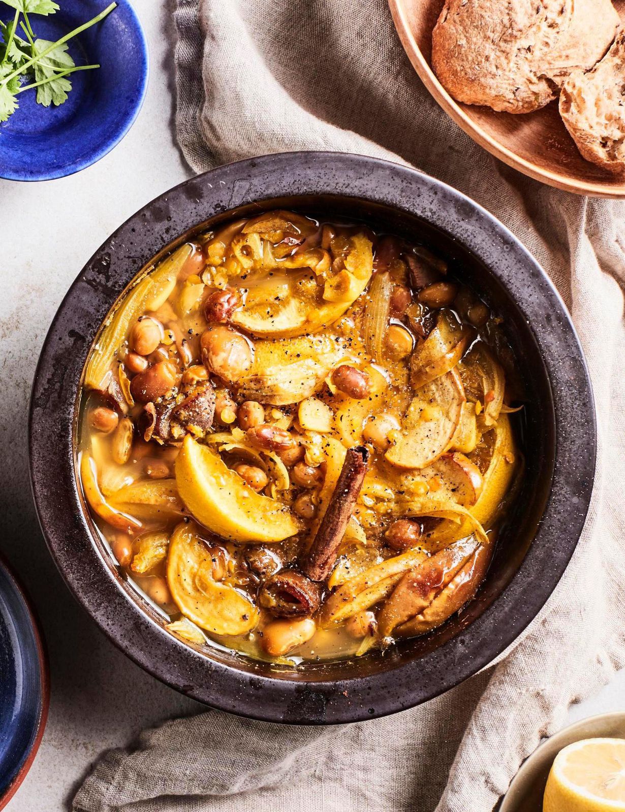 Kypsennä 200-asteisessa uunissa 45–60 minuuttia, kunnes linssit ovat kypsiä. Viimeistele hienonnetulla korianterilla. Tarjoile maalaisleivän, kuskusin tai riisin kanssa.