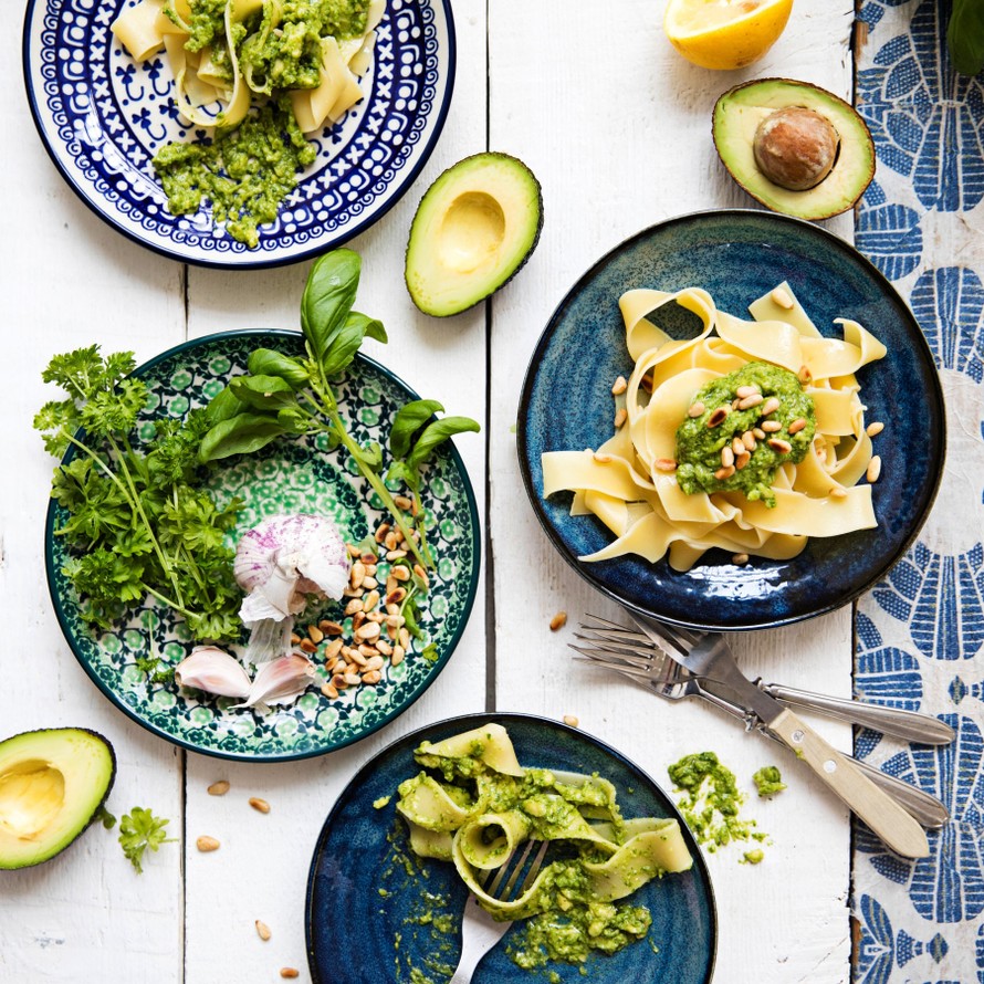 Avokado tekee juustottomasta pestosta täyteläisen makuisen.