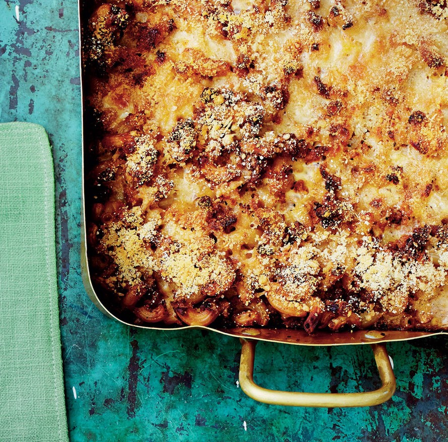 - Raasta juusto ja sekoita se korppujauhoihin. Levitä seos makaronilaatikon päälle. Kypsennä uunin alatasolla noin tunnin ajan.