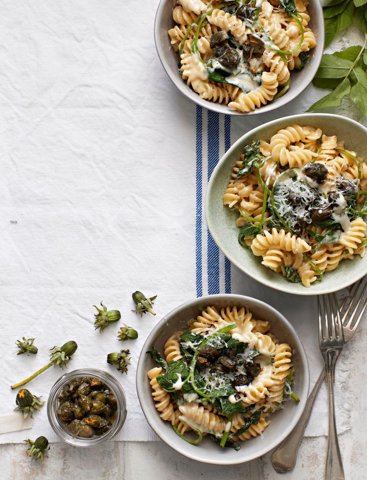 Kokeile pastan kanssa nopeasti öljyssä paistettuja, sitruunalla ja suolalla maustettuja voikukannuppuja.
