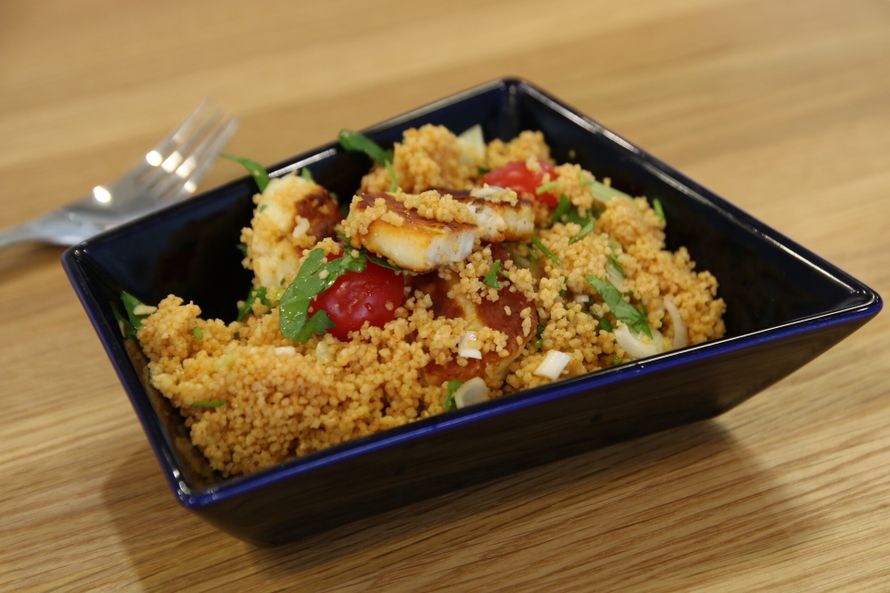 Savuinen couscous-salaatti halloumilla