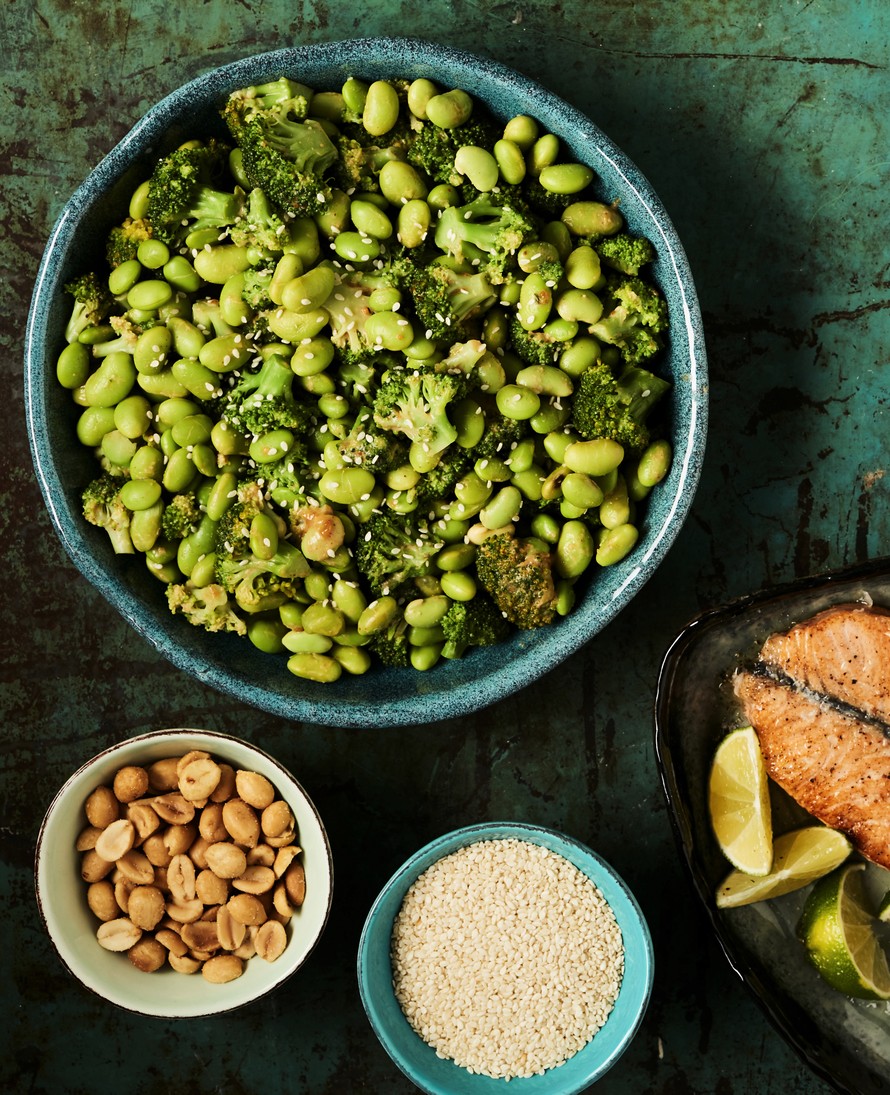 Pähkinäinen parsakaali-soijapapusalaatti