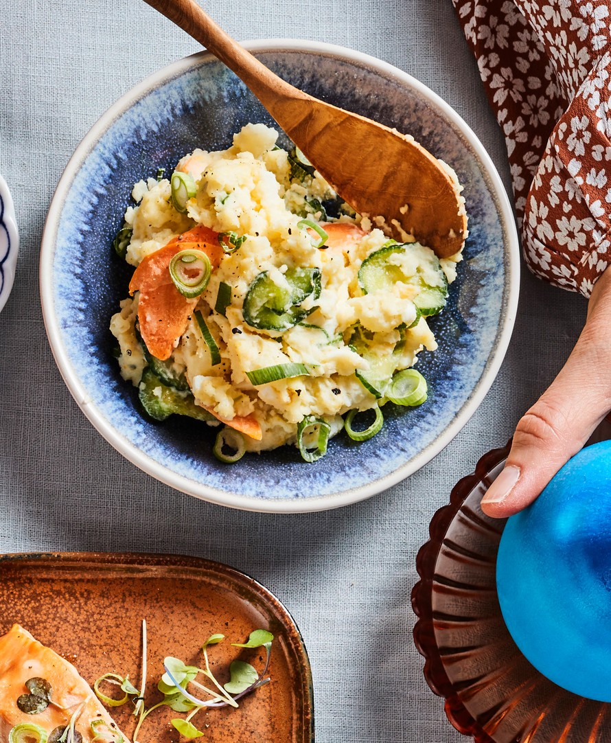 Japanilaisessa perunasalaatissa perunaksi valitaan jauhoinen lajike. Perunat survotaan ronskiksi rouheeksi, mutta ole tarkkana, ettei niistä tule sileää sosetta.