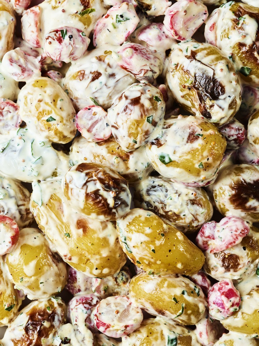 Vappupöydän kunkku vaihtaa vapaalle! Perunasalaatti saadaan kesäfiiliksiin rouskuvan retiisin ja herkullisen rakuunamajoneesin seurassa.
