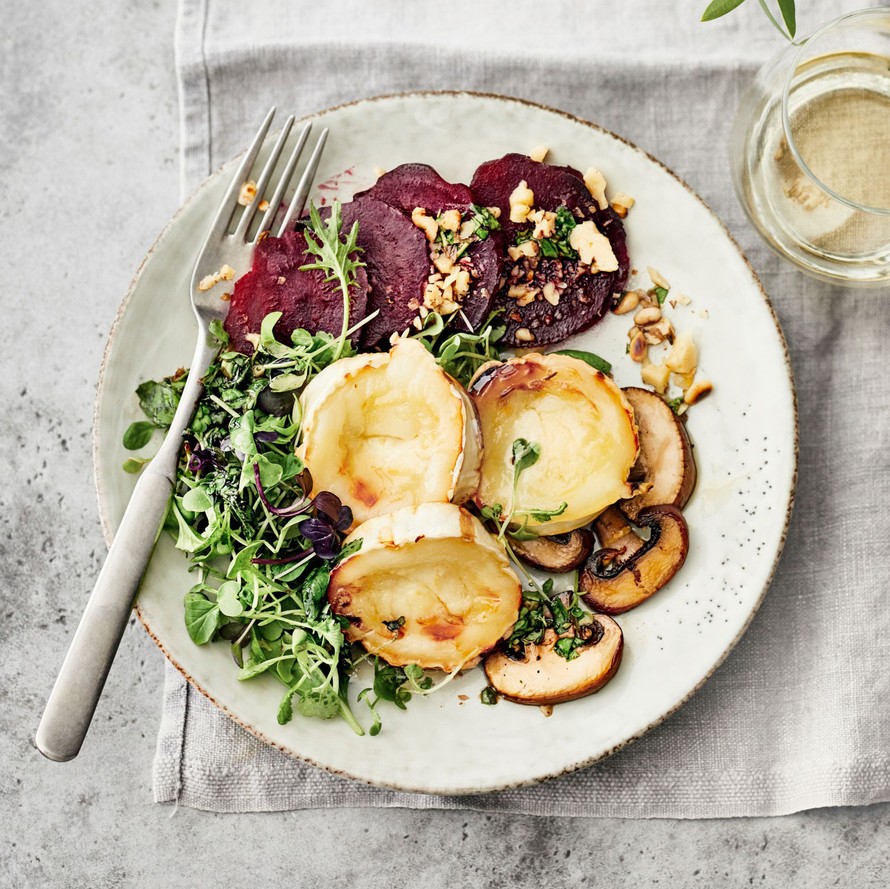 Punajuuri ja vuohenjuusto on kaksikko, johon voi aina luottaa. Kun punajuurien antaa muhia uunissa pitkään ja hartaasti, ja vuohenjuustojen päälle valuttaa hunajaa ja gratinoi ne, yhdistelmästä tulee entistä ihanampi.