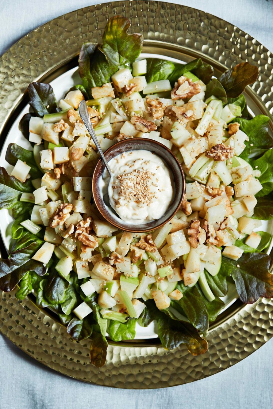 Klassikkosalaatti parhaimmillaan! Omenalta ja seesamilta maistuvan waldorfinsalaatin sydän on majoneesikastike.