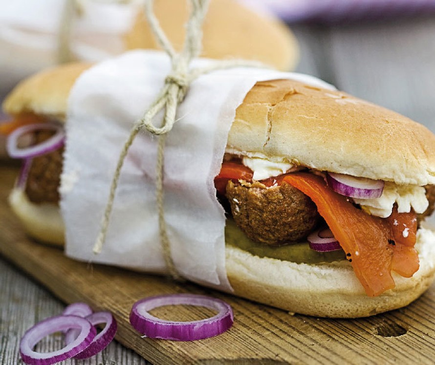 Vinkki! Maustekurkku antaa mukavan suolaisen maun sämpylöille. Jos haluat annokseen lisää tulisuutta, lisää meksikolaista salsakastiketta.
