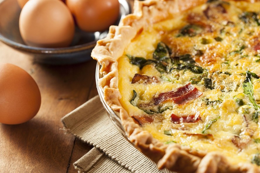 - Valmista täyte: kuullota hienonnettu sipuli öljytilkassa, ja pyöräytä pannulla myös pilkotut paprika, chili ja parsakaali. Lisää tuorejuusto, kermaviili ja kananmuna ja mausta suolalla ja pippurilla. Kaada täyte pohjan päälle. Paista 180-asteisessa uunissa noin 35 – 40 minuuttia.