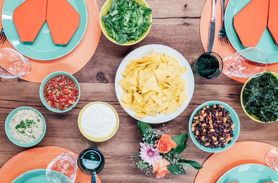 Anna Puun lounaalla Vain elämää -ohjelmassa syödään nachoja tomaattisalsan ja guacamolen kanssa. Lisäksi pöydässä on friteerattua lehtikaalia.
