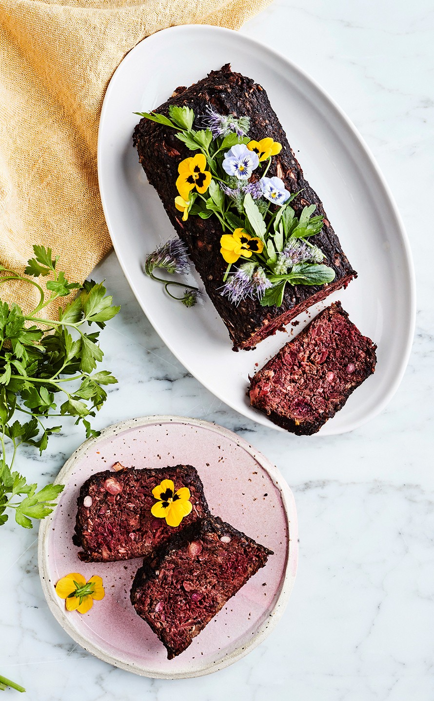 - Anna murekkeen jäähtyä, jotta sen rakenne tiivistyy. Lämmitä mureketta 150-asteisessa uunissa 20 minuuttia ennen tarjoamista. Koristele yrteillä ja/tai syötävillä kukilla.