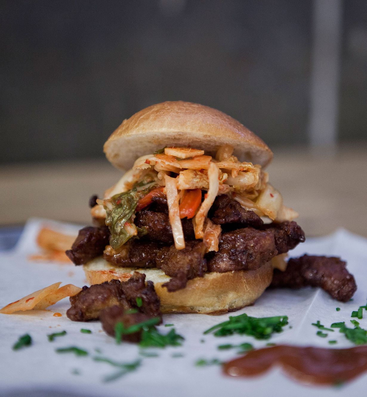 - Yhdistä grillikastikkeen ainekset kulhossa ja pyörittele seitan kastikkeessa. Grillaa, savusta tai paista seitan öljyssä paistinpannussa parissa erässä, kunnes se on saanut väriä. Tarjoa hampurilaispihveinä esimerkiksi kimchin kanssa.