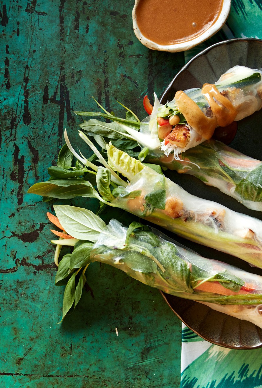 Riisipaperirullat vaativat vähän näpertelyä, mutta lopputulos palkitsee. Täytteessä maistuvat raikkaat kasvikset ja mausteinen tofu. Dipiksi sopii täyteläinen maapähkinäkastike.