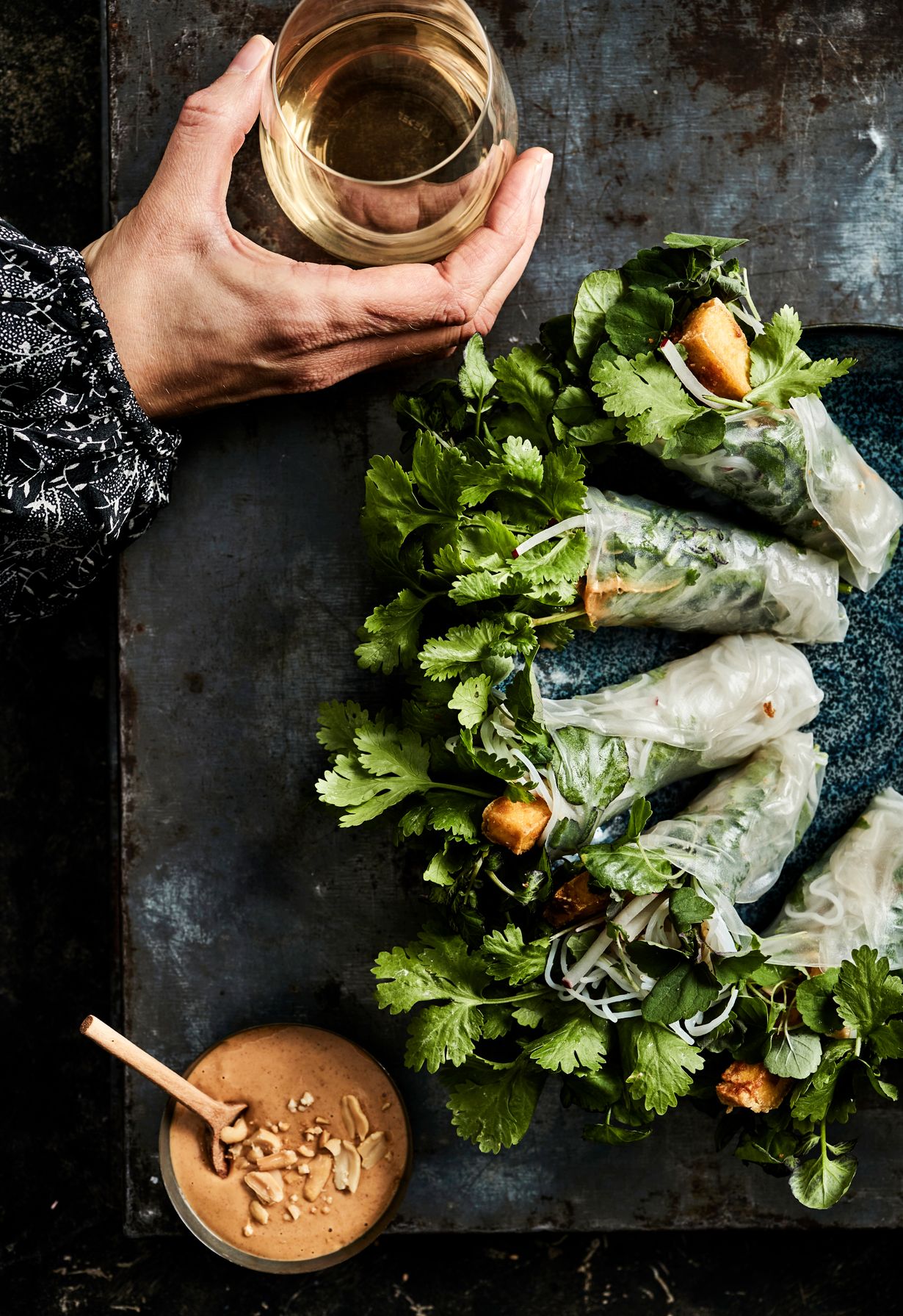 Kääräise rullien täytteeksi rapeaksi paistettua tofua, riisinuudeleita, suolapähkinöitä sekä runsaasti yrttejä. Valmiit rullat dipataan umamiseen pähkinäkastikkeeseen.