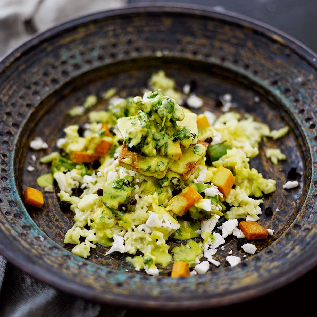 - Hienonna kukkakaalit veitsellä tai pyöräytä ne monitoimikoneella tai tehosekoittimessa nopeasti riisimäisiksi muruiksi.