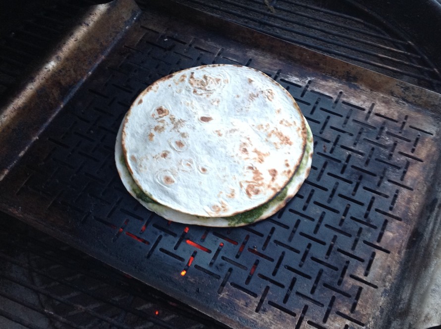 Leikkaa tomaatit ja mozzarella ohuiksi siivuiksi. Levitä tortillaletulle ensin pestoa. Laita sen jälkeen tomaatti- ja mozzarellasiivuja vuorotellen, molempia 3 kpl. Laita päälle lisäksi muutama lehti rucolaa mikäli pidät siitä. Laita päällimmäiseksi toinen tortillalettu. Grillaa täytetyt letut nopeasti grillissä molemmilta puolilta, noin 2 min/puoli, kunnes pintaan on vähän tullut väriä ja mozzarella on sulanut.