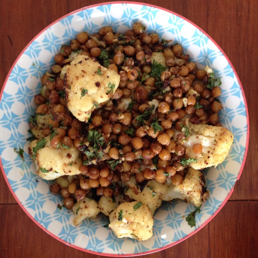 Paistettuihin kikherneisiin ja kukkakaaliin tulee himo.