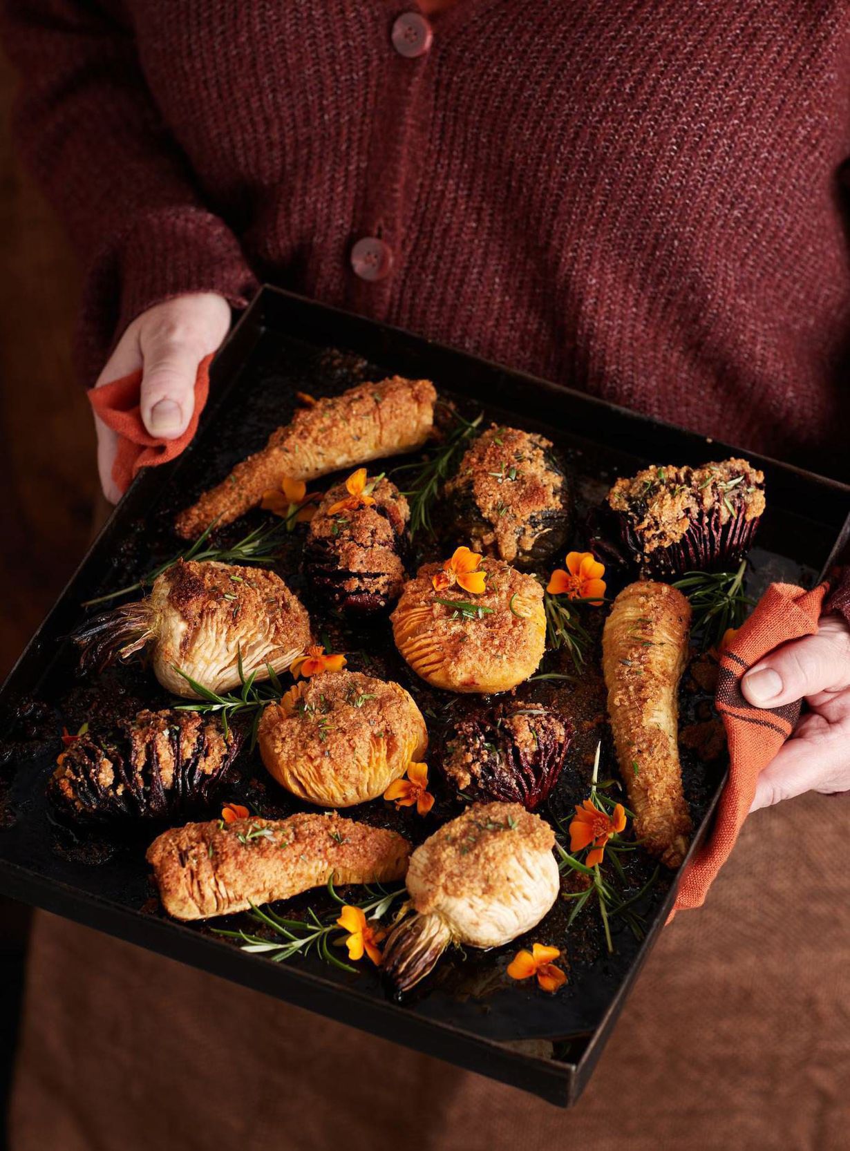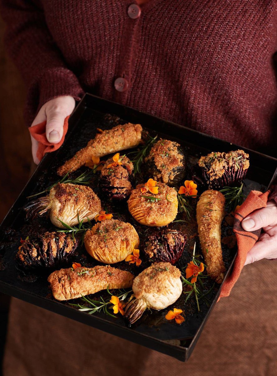 Voit valmistaa kaikki lempijuureksesi Hasselbackan perunoiden tyyliin. Korppujauhot ja parmesaani paahtuvat uunissa herkullisen rapeiksi.