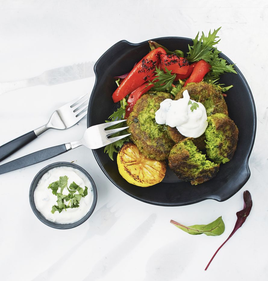 - Hienonna korianterin lehdet ja varret mutta älä hakkaa niitä veitsellä edestakaisin. Sekoita korianteri, jogurtti ja sitruunan mehu kastikkeeksi. Murenna feta joukkoon tai mausta kastike suolalla.
