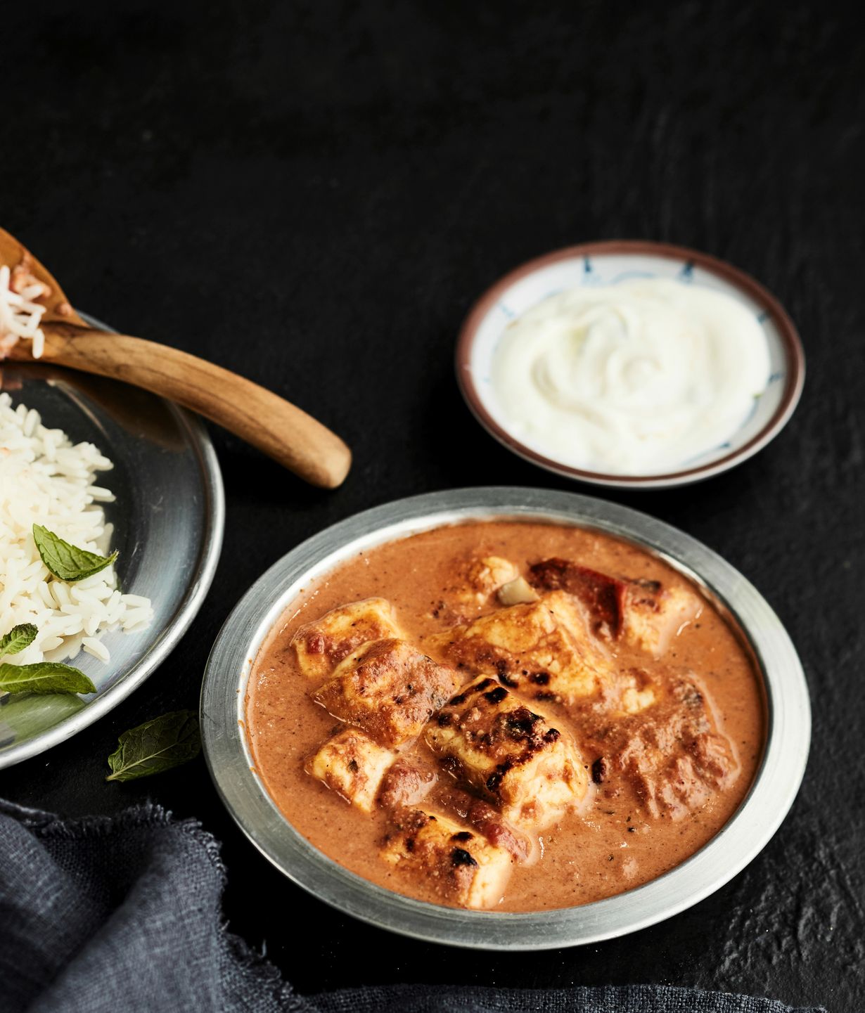Nepalilaisessa curryssa leipäjuusto saa kaverikseen kermaisen tomaattikastikkeen.