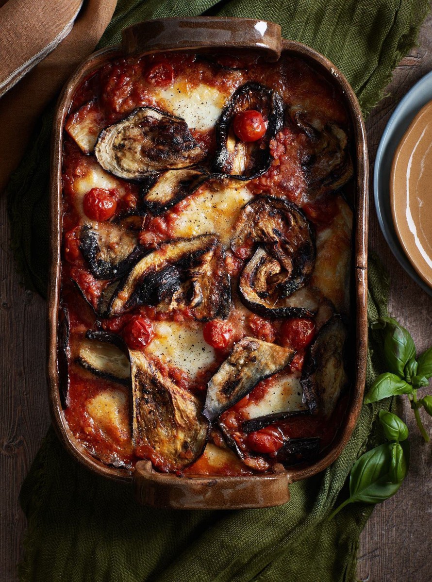- Lado uunivuokaan kerroksittain munakoisoja, tomaattikastiketta, revittyä mozzarellaa ja ripaus parmesaaniraastetta. Ripottele pinnalle loppu parmesaaniraaste.