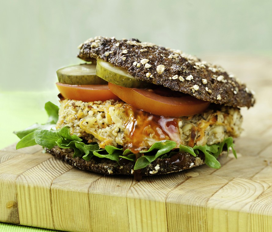 - Viipaloi tomaatti ja suolakurkku. Kokoa kahden ruisleipäviipaleen väliin kasvispihvi ja lisukkeet. Voit halutessasi lämmittää ruisleivät mikrossa tai paistinpannulla ennen kokoamista.