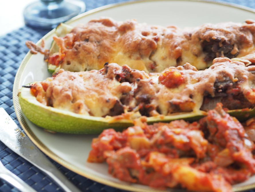 7. Jaa täyte kesäkurpitsoille ja ripottele pinnalle mozarellajuustoraastetta. Paista vielä n. 20 min.