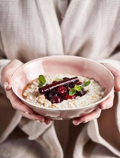 Mantelinen kaurapuuro ja marja-taatelikompotti