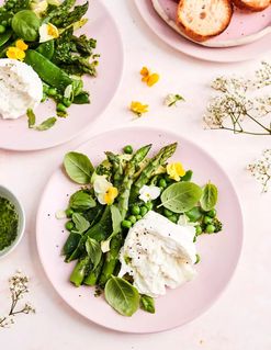 Mansikka-halloumisalaatti ja sitruunamelissakastike