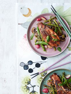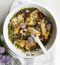 Ajvar-kanaa lehtikaalin ja tagliatellen kera