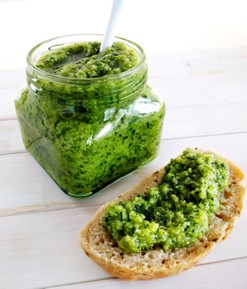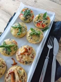 Täytetyt sienet vihreällä pestolla sekä munakoiso perunasalaattilla, ranskiksilla että kasvisbruchetoilla Jaana tuulee lisäsi reseptin