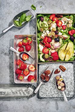 Mozzarellabroileria ja tomaatti-avokadosalaattia