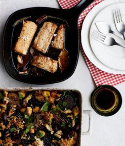Uunimunat ja pikapaistetut vihreät kasvikset