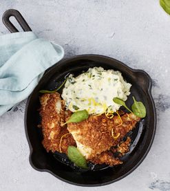 Paneroitu seiti ja pinaatti-palsternakkamuusi